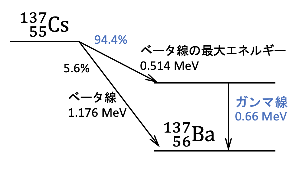 Cesium-137 emits a beta particle and a gamma-ray per nucleus by 94% chance when they decay. The most common technique to distinguish Cs-137 is by analyzing the energy spectrum of gamma rays since Cs-137 is known to emit gamma rays with the energy of 662 kilo-electronvolt (keV).